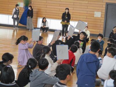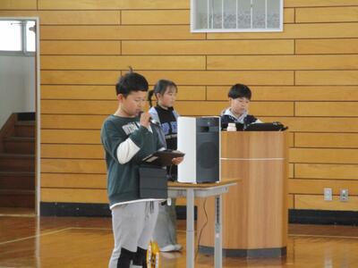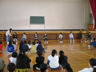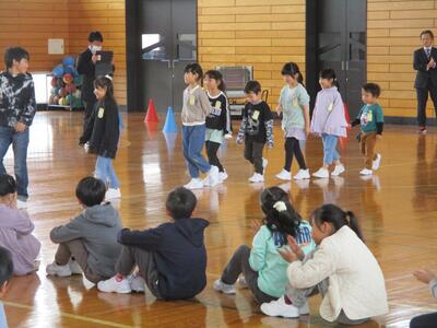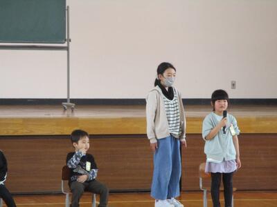1年生を迎える会がありました。6年生が「1年生を歓迎したい」「思い出に残る楽しい会にしたい」と考えて、準備してくれました。最初は緊張した様子の1年生でしたが、2年生以上のみんなが温かく迎えてくれたので、ゲームの時はとても楽しそうな笑顔を見せていました。とても素敵な時間になりました。