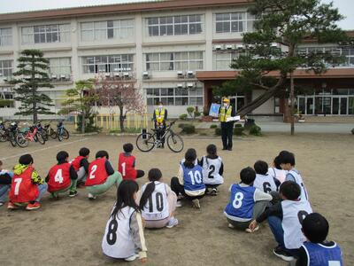 今日は、5,6年生と3,4年生の交通教室がありました。交通指導員の方々から自転車の正しい乗り方を学び、路上で実地訓練を行いました。高学年は自転車乗りに慣れている人が多いのですが、慣れてきた時が危険です。油断して事故に遭うことのないように、改めて正しい乗り方を確認しました。3,4年生は自転車乗りにまだまだ慣れていない人もいます。特に、3年生は初めての交通教室でした。確認をしっかりするように教わりました。今日訓練したことを忘れずに、「自分の命は自分で守る」ことができるようにしていこうとみんで約束をしました。