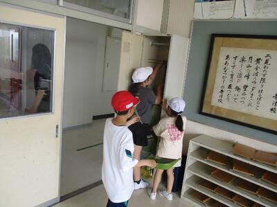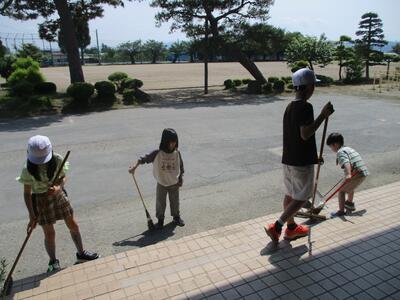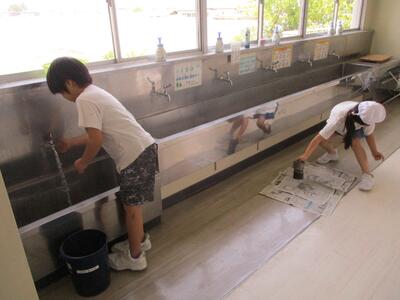 月曜日は、縦割り班ごとに清掃を行っています。6年生が校内を見て、清掃が必要と思う場所を考えてくれました。上学年が下学年にやり方を教えたり、学年を超えて協力したりする姿が見られます。