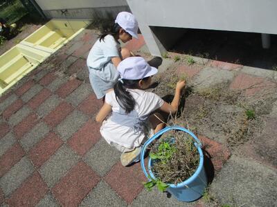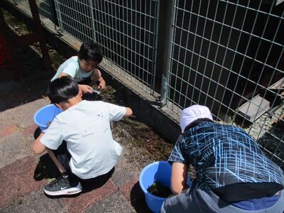 下学年の子どもたちは、午前中の授業の時間に、草取りを頑張りました。