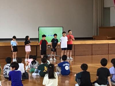 3つ目は、「あきらめないでめあてに向かって練習すること」です。各学年を代表して、6名の人が自分のめあてを発表してくれました。一人一人、自分のめあてに向かって、あきらめないで取り組んでいってほしいと思います。