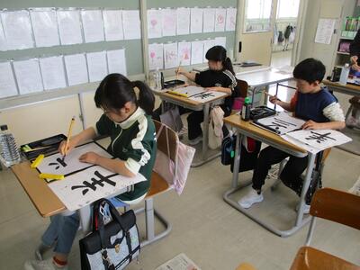 少し前の習字の時間の様子です。