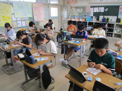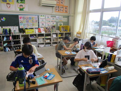 ボタンのつけ方練習 投稿: 管理者 (15:34) 5年生が家庭科の学習で、ボタンのつけ方の練習をしていました。 動画でつけ方を確認しながらの練習です。 「難しい!」と言いながらも、頑張っていました。 -