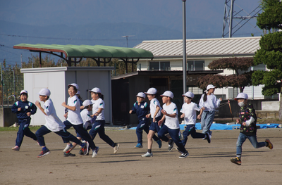 全校鬼ごっこ開催‼ 投稿: 管理者 (10/31) 秋晴れの下、児童会「からだづくり委員会」主催の、「全校鬼ごっこ」が開催されました。普段は広く感じるグラウンドでしたが、今日は、所狭しと逃げる子供たち。2回目は、教員も鬼になり大人げなく猛ダッシュ‼ 笑顔、真剣な顔……。楽しく体を動かしたひとときでした。からだづくり委員会の皆さん、ありがとうごさいました。 -