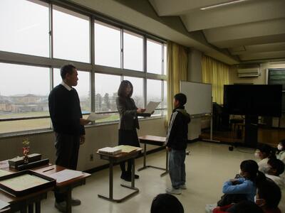 読書感想文、理科作品展、市民美術展、図画作品展、防犯標語コンクール、市民書道展に出展し、受賞したみなさんの表彰を行いました。