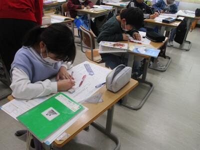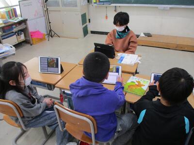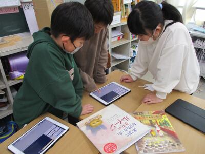 今日の学習の様子 投稿: 管理者 (11/26) 4年生の算数の学習の様子です。垂直な直線の交わり方について学習していました。 三角定規を当てながら、一人一人しっかりと確認していました。 3年生の国語の学習の様子です。グループごとに、おすすめの本を選び、これから紹介文を考えるところでした。 1年生にも紹介するとのこと。楽しみです! -
