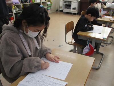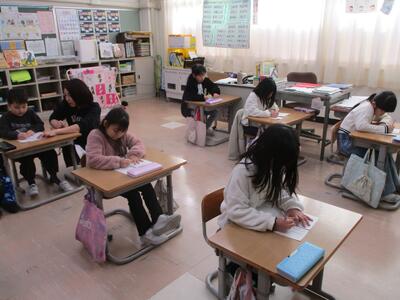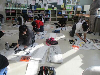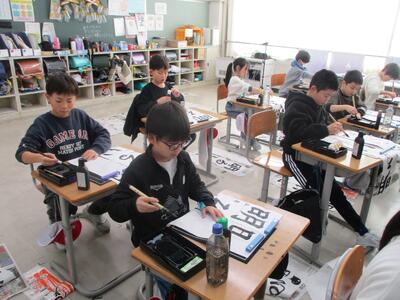 書初め大会 投稿: 管理者 (15:58) 2時間目に、どの学年も書初め大会を行いました。 それぞれの教室で、集中して取り組む姿がありました。子どもたちは、冬休みにも家で練習してきています。今日は、その成果が出ていたのではないでしょうか。 1年生 2年生 3年生 4年生 5年生 6年生 さくらんぼ -