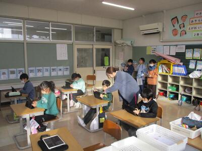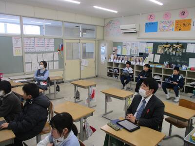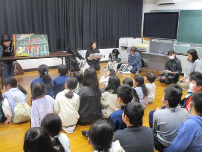 学校の様子より 投稿: 管理者 (16:35) 「心をはぐくむ給食週間」の取り組みで、ロング昼休みにパソコンルームで読み聞かせライブがありました。 先生方による「給食番長」という大型絵本の読み聞かせでした。先生方が、役になりきってセリフを読んでいたので、会場は大盛り上がりでした。 今日の委員会活動には、3年生が見学に来ていました。来年に向けて、それぞれの委員会がどんな活動をしているのかを知るためです。しっかりメモを取りながら見学していました。 -