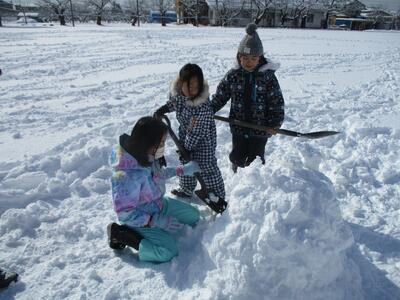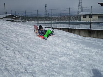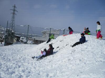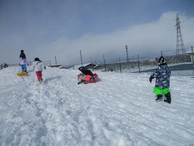 1,2年生が、体育の授業で雪遊びを行いました。そり滑りやかまくら作り、雪合戦など、思い思いの活動を楽しんでいました。天気も良く、絶好の雪遊び日和となり、グラウンドに笑顔があふれていました。