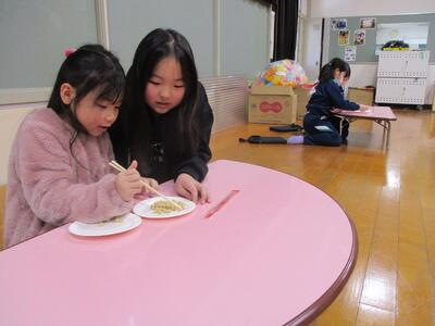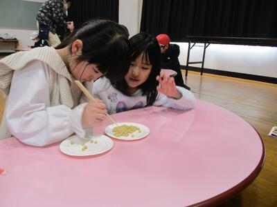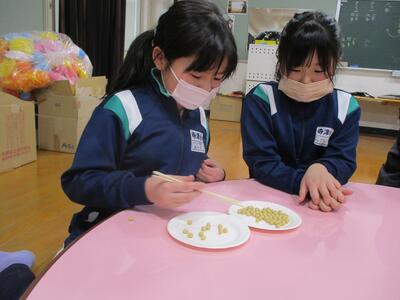 「心を育む給食週間」の取り組みで、ロング昼休みに「豆つかみ大会」が行われました。上手につかめているなあと思いながら見ていたのですが、終わった後に「悔しい!」という声がたくさん聞こえました。もっとつかみたかったという気持ちのようでした。自由参加の大会でしたが、なかなか面白い企画でした。