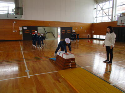 1,2年生の跳び箱の学習です。先日、外部講師の先生から教えていただいたコツを思い出しながら、何度も挑戦していました。