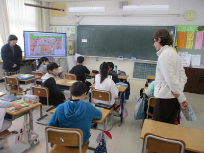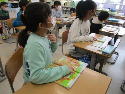 4年生が外国語の学習で、学校の教室や部屋を英語でどんな風に表すのかを学習していました。デジタル教材やダコタ先生の発音を聞いて、どの部屋かを探していましたが、しっかり聞き取ることができていたようです。