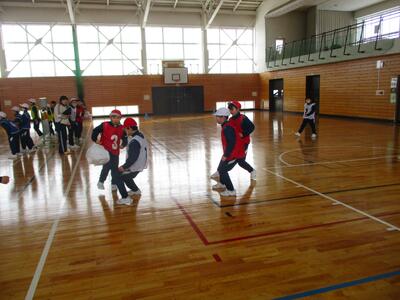 3,4年生で協力してのチームプレー 投稿: 管理者 (14:46) 3,4年生が体育で、ゴール型ゲーム運動に取り組んでいました。柔らかく大きなボールを使ってのサッカーのようなゲーム運動です。3,4年生合同のチームで、声を掛け合いながらプレーしている様子が見られました。 -