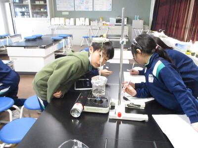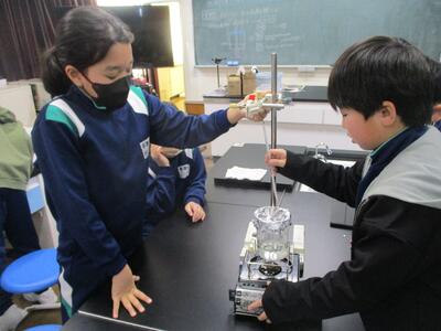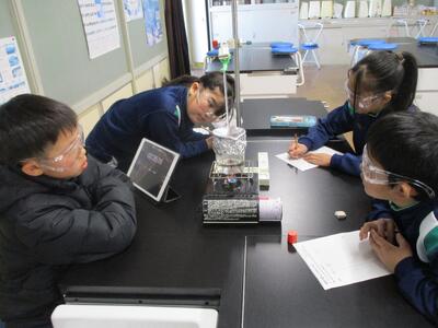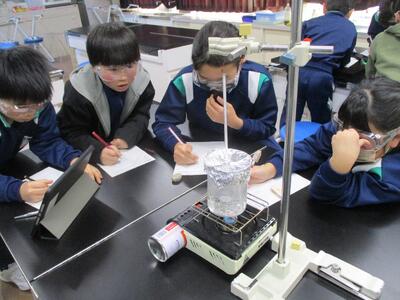 水は何度で沸騰する? 投稿: 管理者 (14:40) 4年生の理科の学習の様子です。 水は何度くらいで沸騰するのか、お風呂のお湯の温度など、日常の経験などをもとにしながら予想を立て、実験を行っていました。1分ごとに温度を測り、ビーカーの中の水がどのように変化していくのか、集中しながら丁寧に観察していました。 -