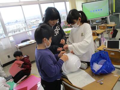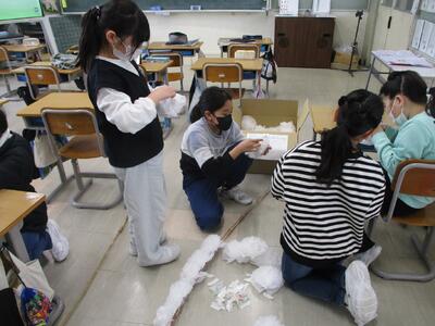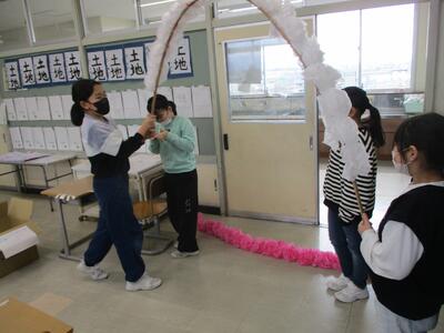 4年生が卒業式のあとの門出式の準備をしていました。