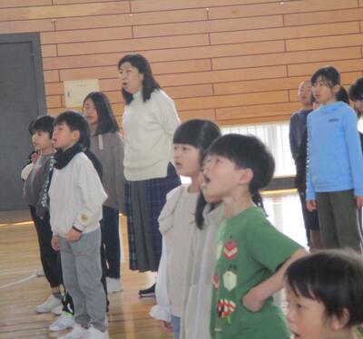 前半は、歌の練習、後半は、1~5年生だけで呼びかけ練習を行いました。