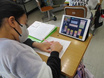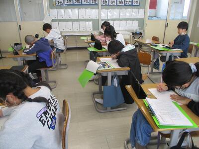 4年生が3学期の振り返りを書いていました。
