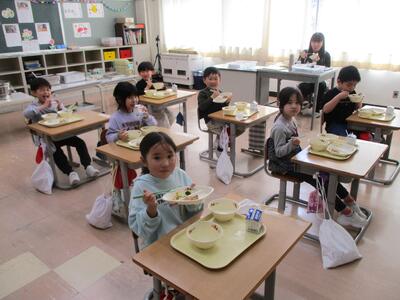 「おいしい!」と、みんなにこにこ笑顔で食べていました。