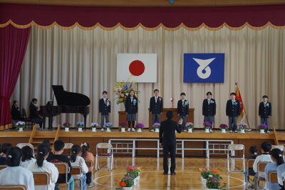 3月19日に、令和7年度卒業証書授与式を行いました。中学校の制服を身にまとった凛々しい姿の8名の卒業生が、立派に旅立ちました。在校生、教職員みんなで、卒業生の新たな門出を祝いながら、見送りました。