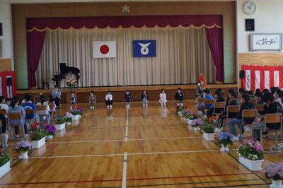 令和8年度の入学式を行い、新たに7名の1年生が寺津小学校の仲間入りをしました。