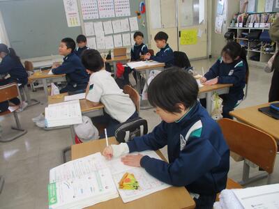 それぞれの教室で、集中して取り組む姿がありました。子どもたちは、冬休みにも家で練習してきています。今日は、その成果が出ていたのではないでしょうか。