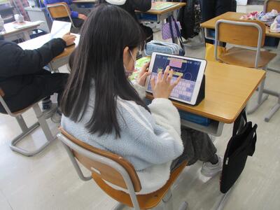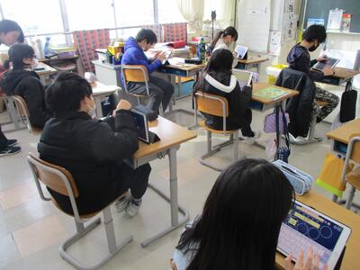 分からなことがあると、ICT支援員の先生に進んで質問しながら、意欲的に取り組んでいました。